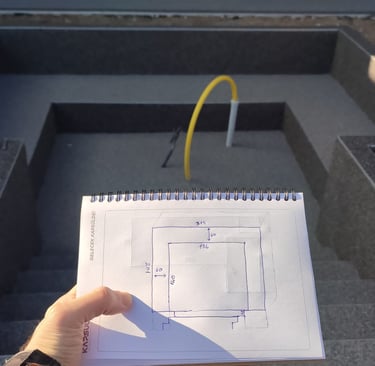 Ateş çukurunun boyutları, oturma düzenine ve gaz hattının konumuna göre belirlenmelidir.